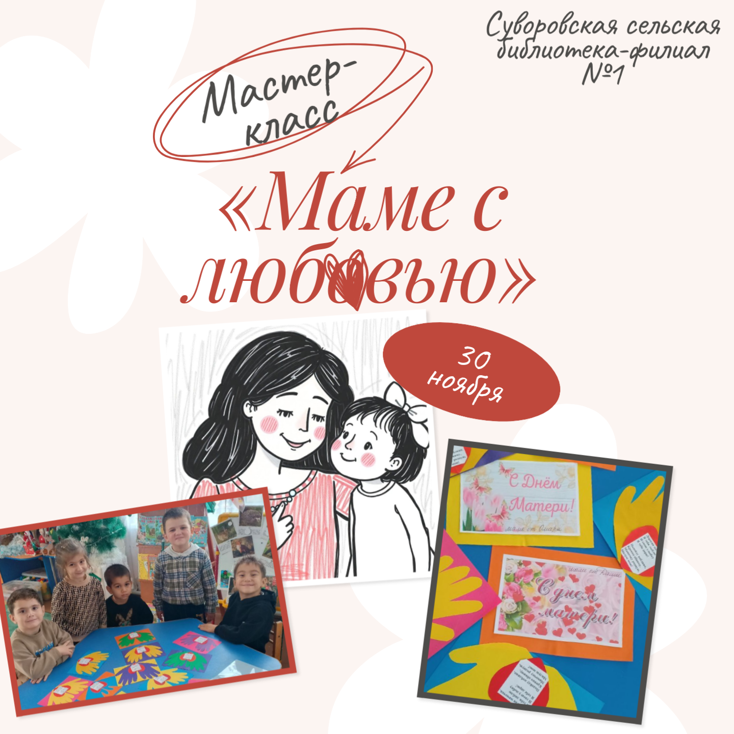 Чтобы сделать подарок на День матери своими руками, нужно всего ничего – любить свою маму и желать поздравить её. Конечно же, взрослые дочери и сыновья часто просто покупают для своих мам что-нибудь нужное или приятное для них. А вот 28 ноября в Суворовской школе-сад №6 царила атмосфера творчества и вдохновения, ребята с большим удовольствием украшали открытки, маленькие дети порадуют мам своими скромными поделками, которые сделаны с большим старанием и от всего сердца.